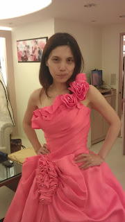 接下來是八月去試穿婚禮禮服,總共可以選三套禮服,一套白紗