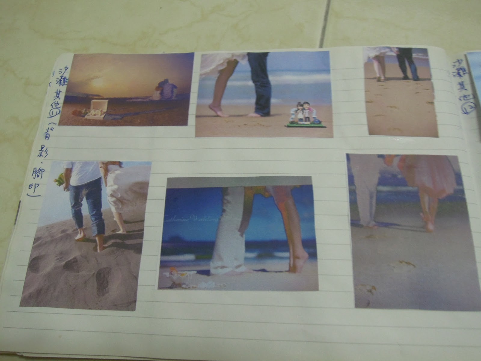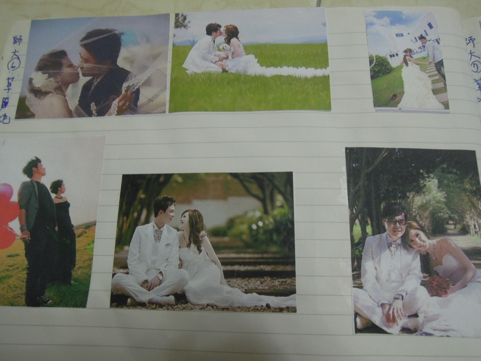 忙著收集照片:話說我跟達達拍照本來就有肢體上的障礙,我怎麼拍就那一號表情啊,所以,當然要看看別人怎麼拍,有哪些動作可以模仿,所以我一天要看上數百張照片,那一陣子常常看到頭昏,覺得大家都拍得好好,很怕自己會拍得不好........後來還把覺得不錯的存下來,再挑著印出來,貼在我的收集本上,以便和攝影師討論。(如圖)