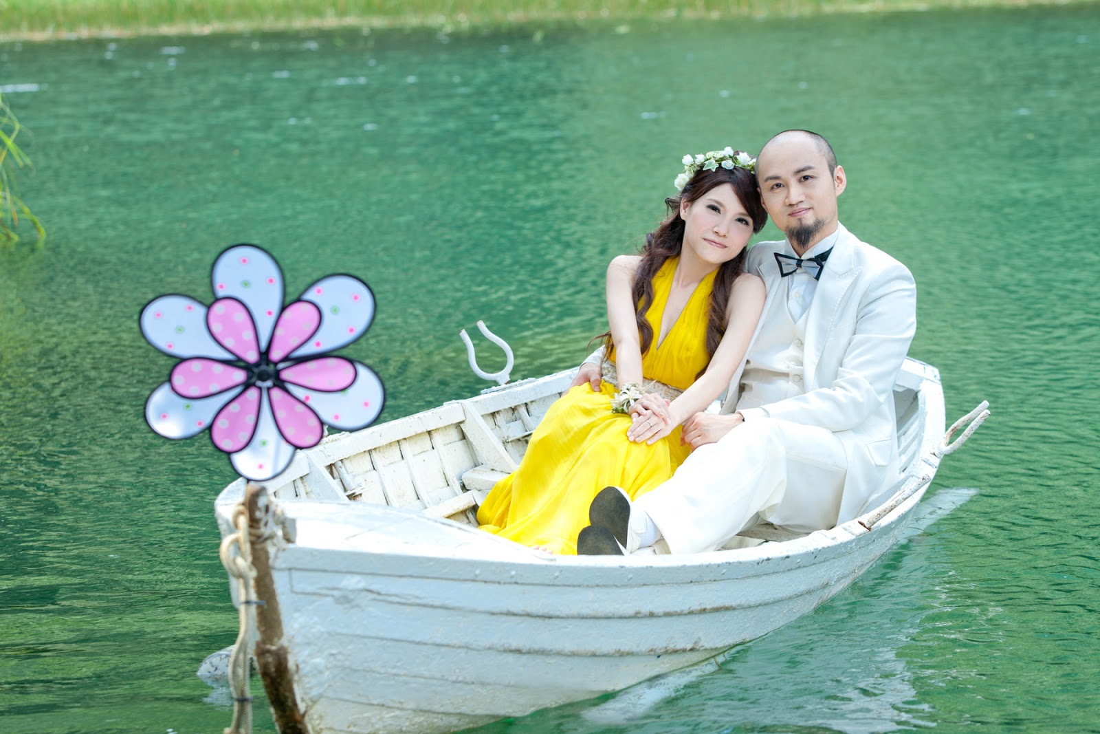 請各位看看,光找照片、弄道具我就已經心力交瘁了,若是禮服、化妝都得自己處理,我應該沒辦法,所以我找了婚紗公司,至少有車坐、有專業攝影師、化妝師,雖然拍法會受侷限,不過我覺得香榭已經盡力達成我的要求了,我很滿意!